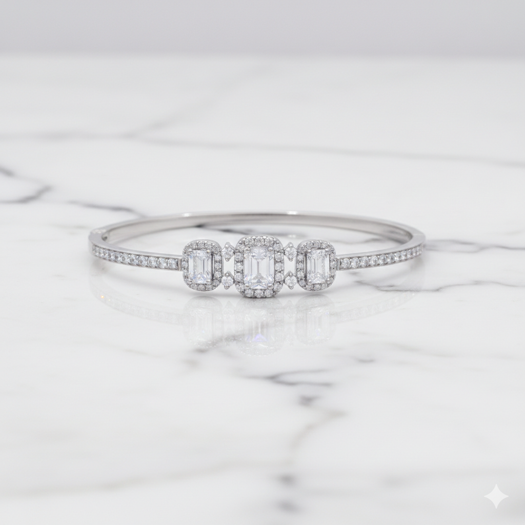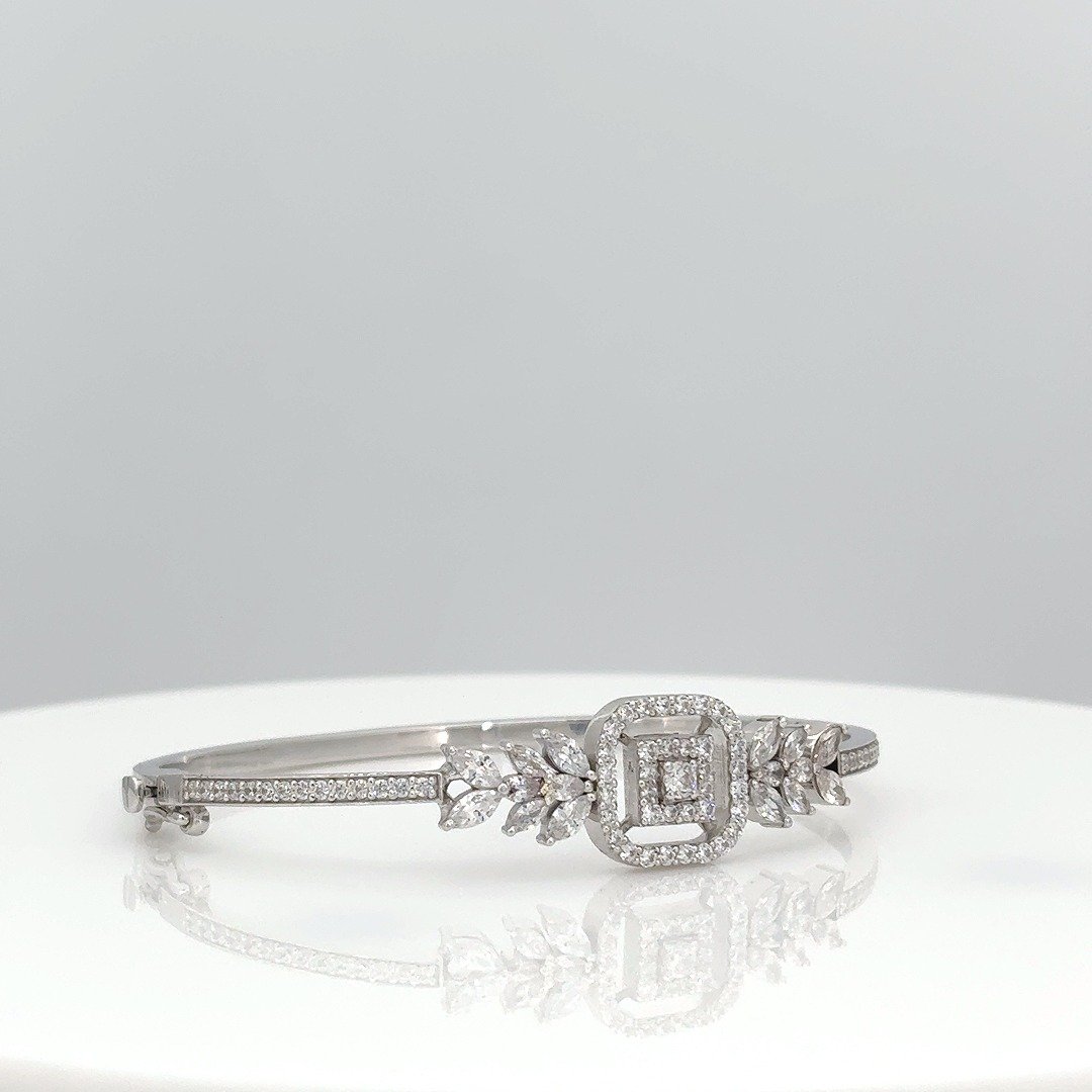 Geometric & Leaf Motif Diamond Bangle