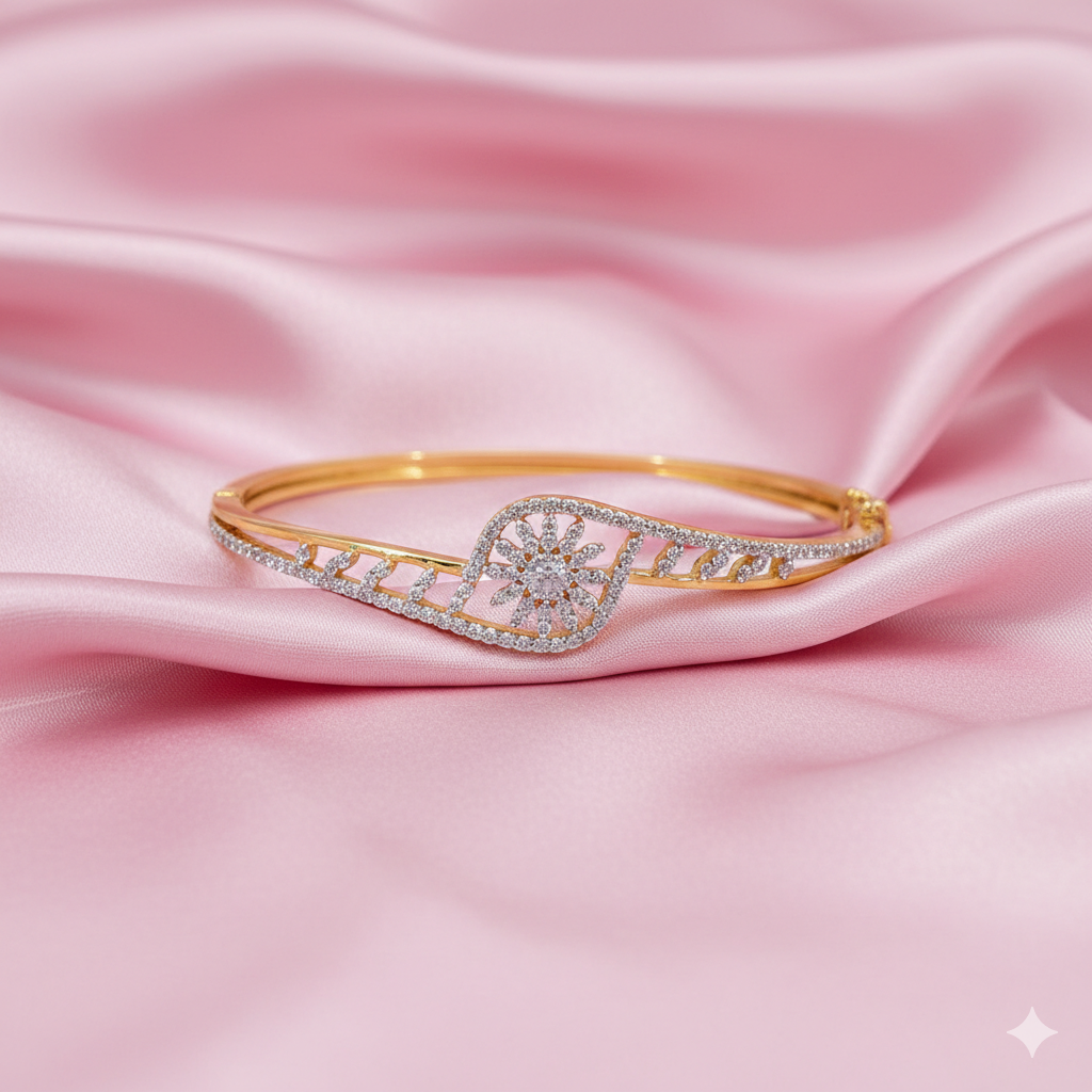 Gold Floral Diamond Bangle Bracelet