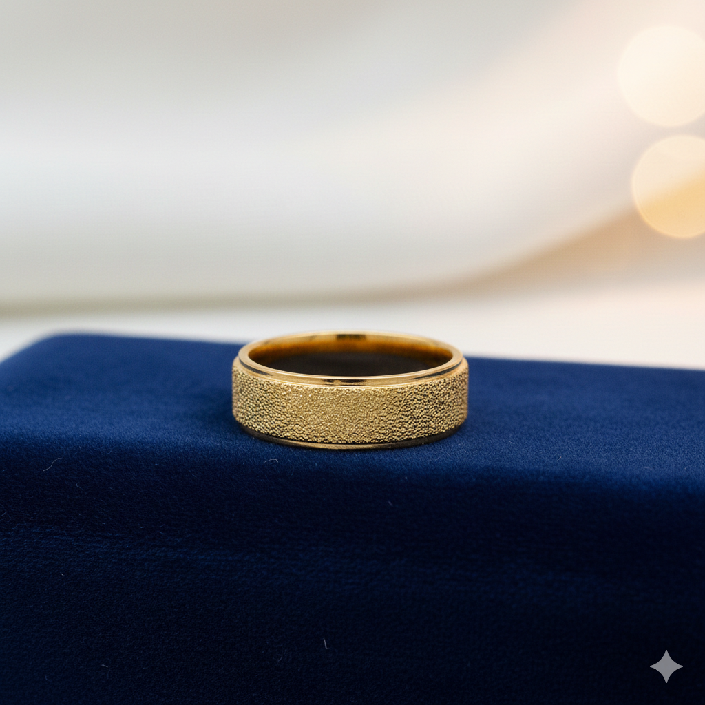 Wide Gold Band Ring with a Sandblasted Finish