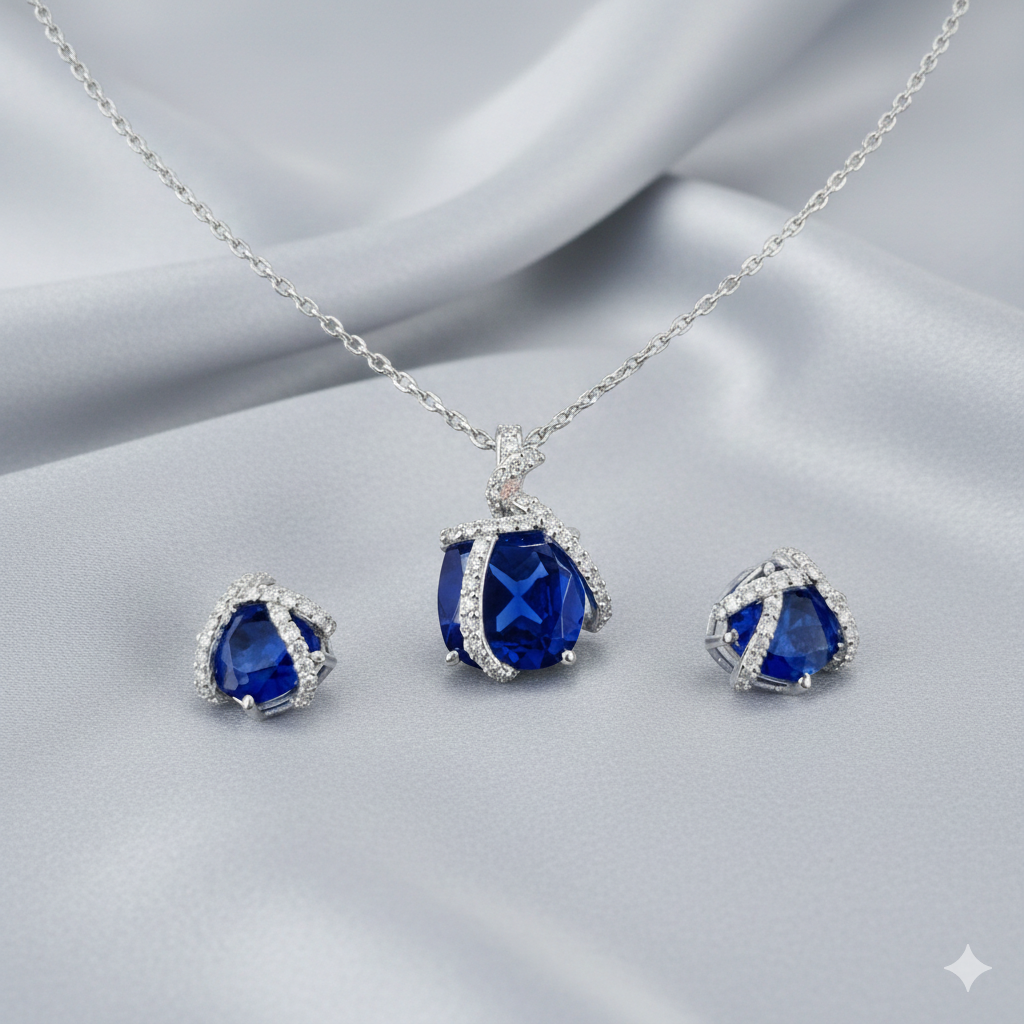 Royal Blue & Diamond Swirl Pendant Set
