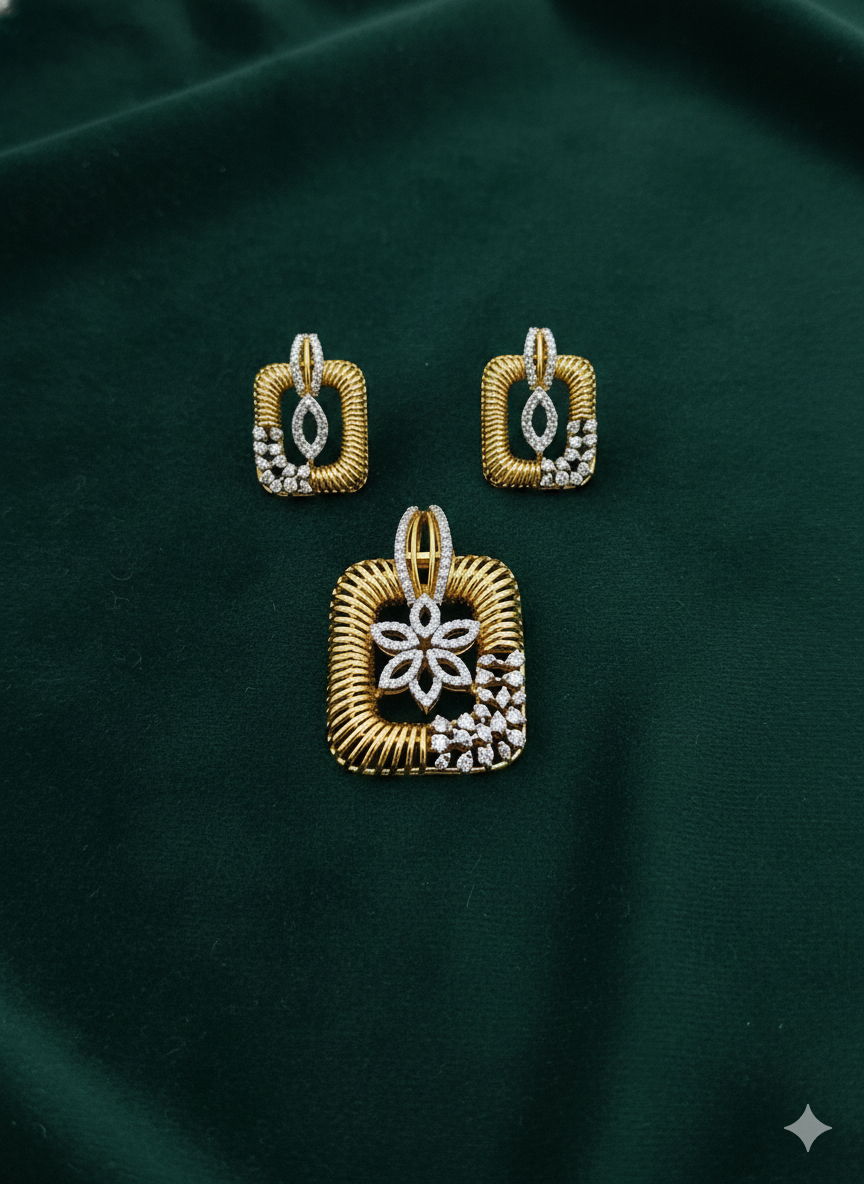 Two-Toned Gold & Diamond Square Pendant Set