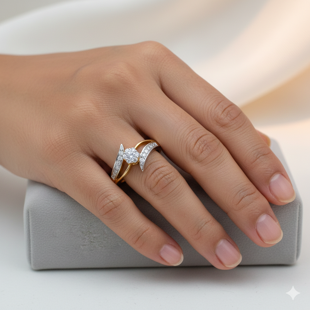 This ring is designed for those who appreciate both classic romance and sophisticated design. The blend of warm and cool tones makes it a versatile and breathtaking symbol of everlasting love.